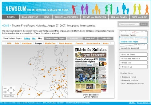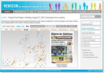 Para além de diversos serviços disponibilizados, o Newseum permite visualizar as primeiras páginas de diversos jornais dos Estados Unidos e de muitos outros países do mundo. Portugal está representado com os jornais Diário de Aveiro, Diário das beiras, Diário de Coimbra, Diário de Leiria, Diário de Notícias, Público, Jornal de Notícias e Diário Regional de Viseu. Desconhecemos os critérios de integração.