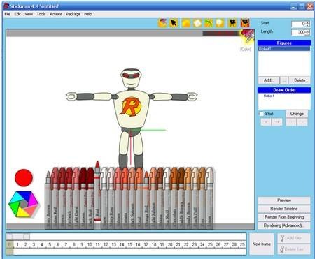 O Stickman dispõe de uma barra de tempo que facilita o desenvolvimento e organização dos frames e o respectivo movimento.